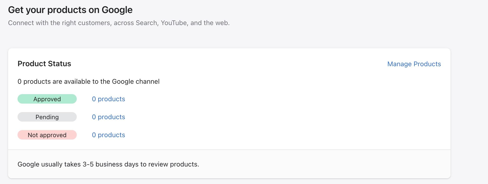I have all the policies on my store, and no errors on my merchant center. However the google sales channel on Shopify keep telling me that there are 0 products available. (I already made my product available on both online store and google). I think the problem is from the shopify app, not from the merchant center. Does someone know how to fix that ?