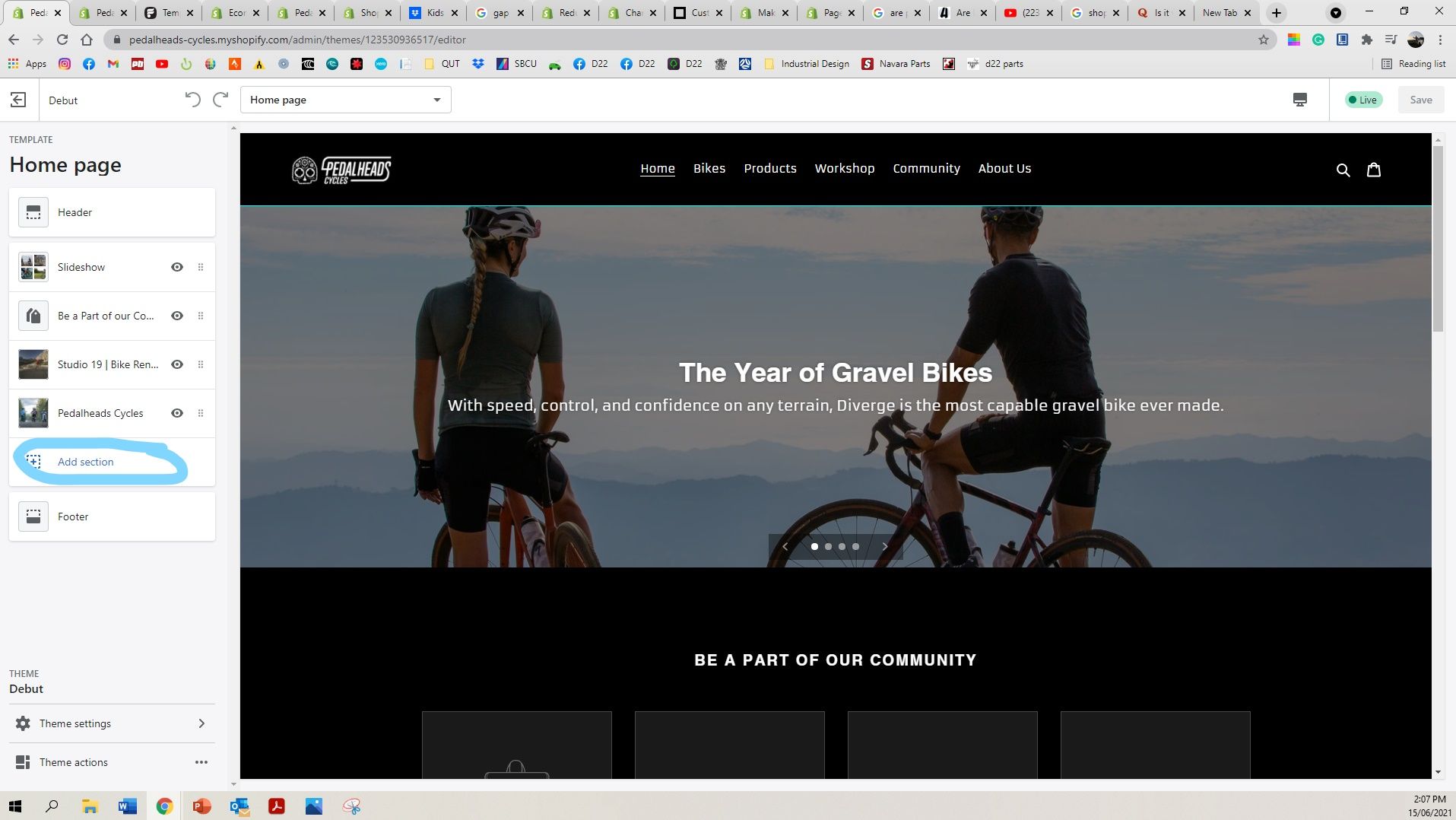 Highlighted in blue on both pages, you can see there is an add section on the home page but in the community page for example there isnt anything. This is using the debut theme which is free. Does paying for a theme fix this or is there a way i can get this on all pages in the website design to allow for easy adjustability.