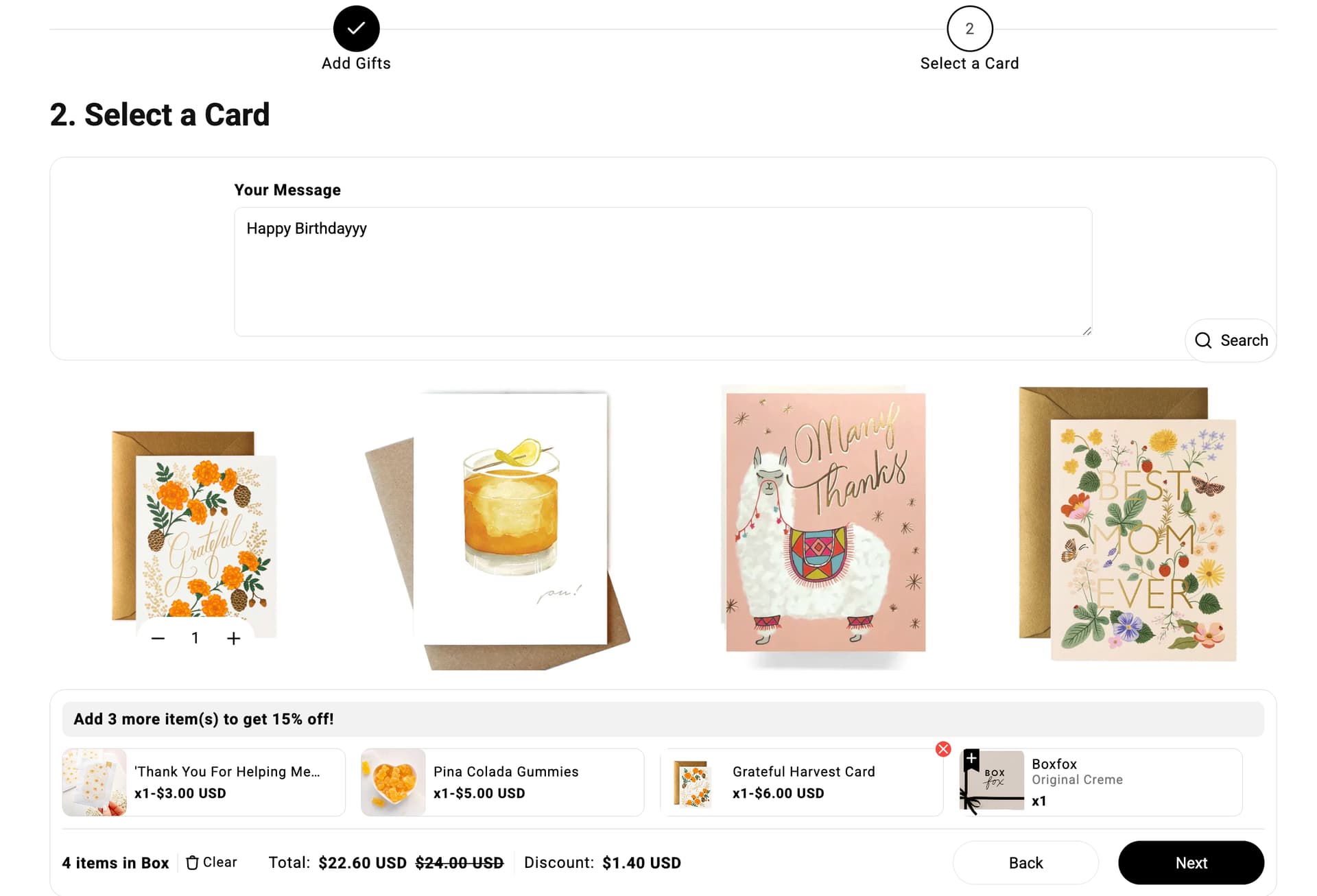 I am hoping for something like when the customer creates their bundle, the gift box is automatically added to the cart because the item is a gift bundle.