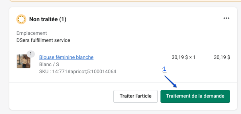 À la page de la commande, cliquez sur le bouton vert '‘Traitement de la demande’’.