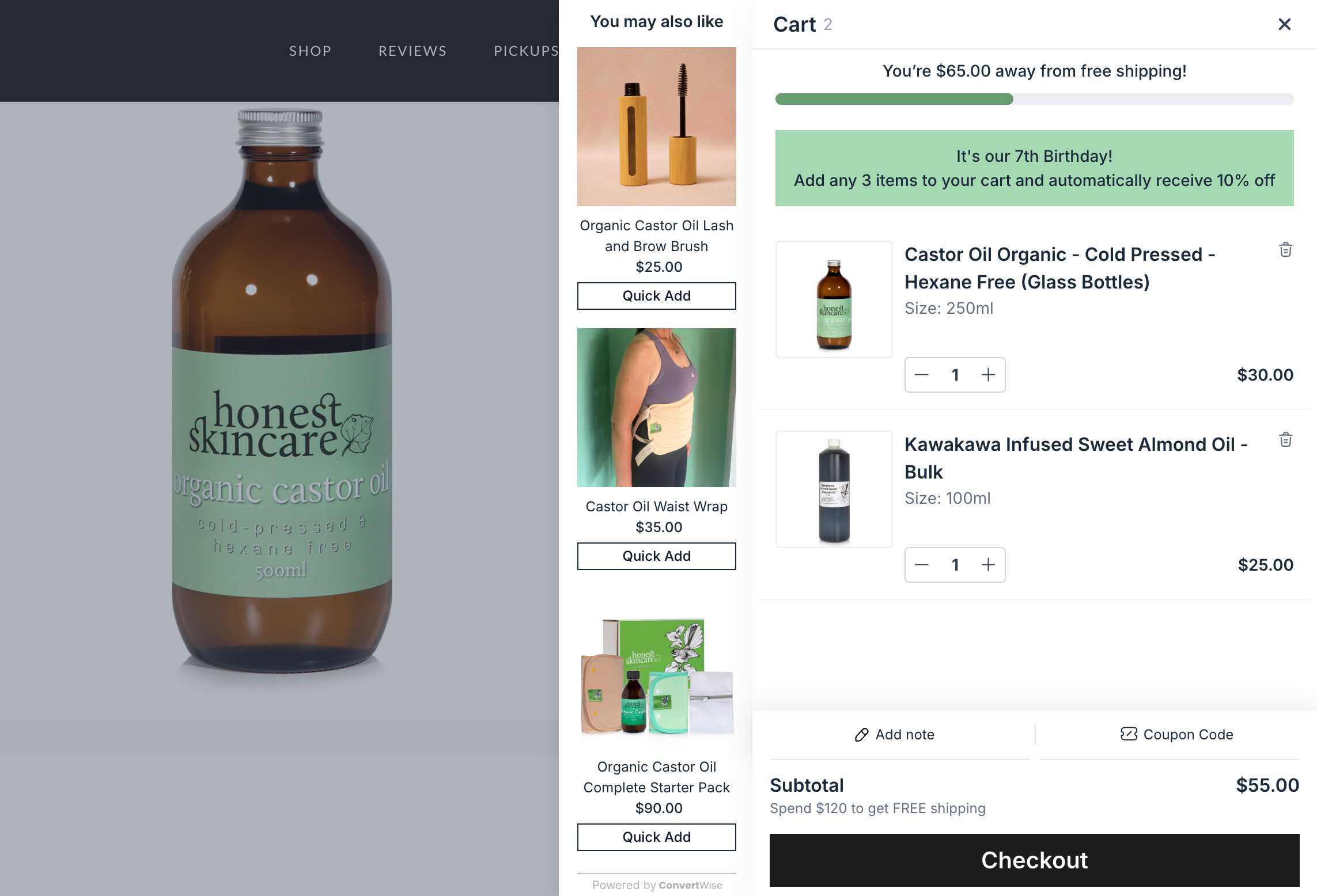 We’ve designed the cart so that it feels non-intrusive, blends into your site, and boosts AOV and cart conversions. One of our clients, a sports memorabilia store, saw 30% higher cart conversions after using it. Here’s a video of the store’s e-commerce head sharing his experience of the app.