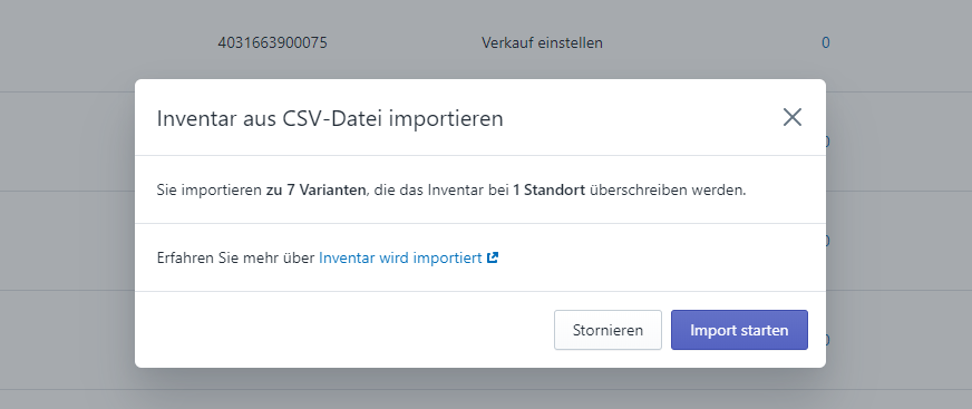 Ich schlage vor, dass Sie sich unser Hilfedokument Importieren und Exportieren von Produkten genau durchlesen und Schritt für Schritt befolgen. Besonders die Benennung, Reihenfolge und Format der einzelnen Spalten sind dabei sehr wichtig genau einzuhalten.