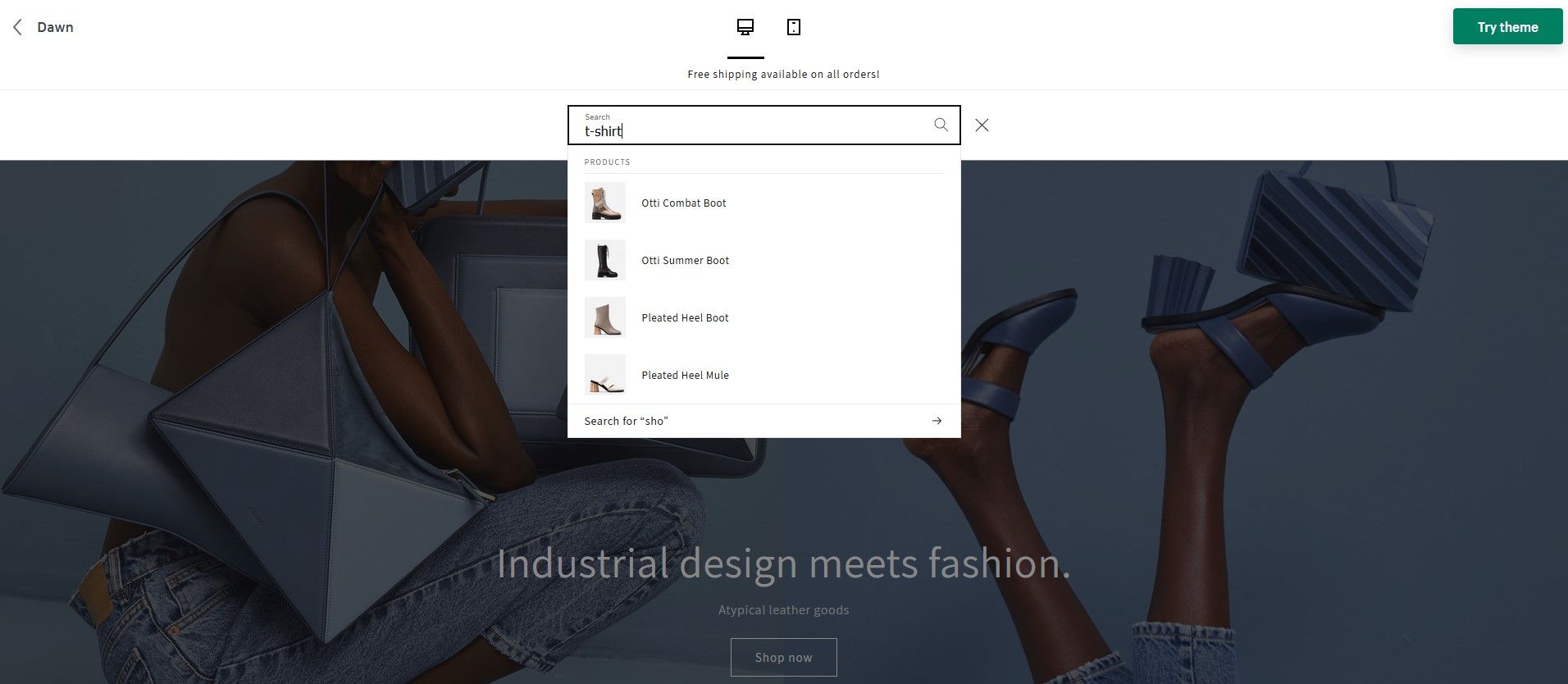 Se provo a digitare un’altra parola, ad esempio t-shirt, questa non porta ai risultati desiderati, infatti i risultati di ricerca Predictive sono ancora quelli della parola Search for “Sho”