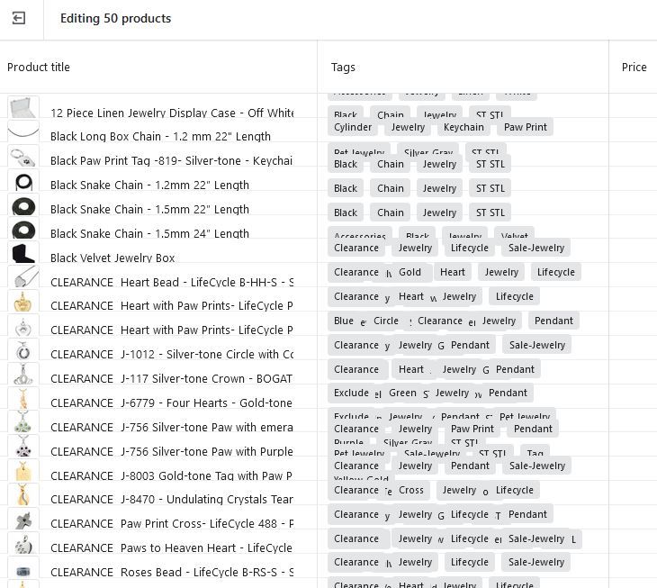 Fortunately, I see Shopify is fixing the Product bulk editor so we can see all the tags at once. However, if using Mozilla Firefox (100.0.2) the tags are stacked on top of each other with no way to modify spacing. See image attached.