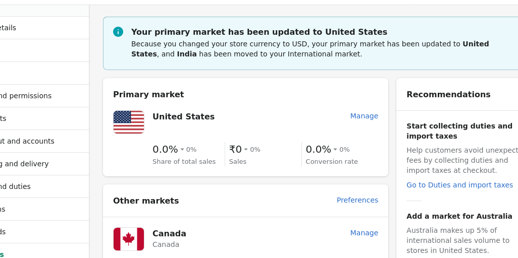 I am not allowed to change my default country in markets to my country it HAS to default to US according to shopify, but my question is WHY ? I am not located in the USA!.