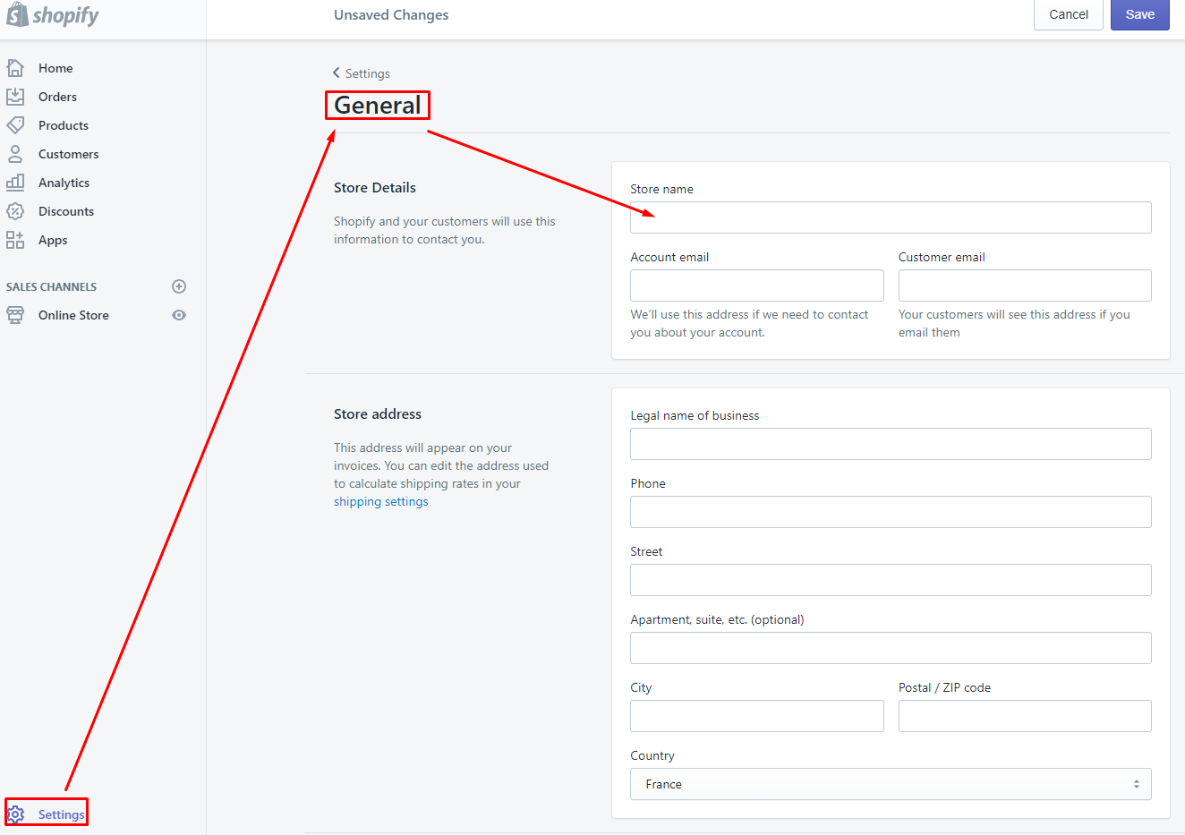 Lorsque vous êtes dans votre tableau de bord Shopify, l’URL en .myshopify est celle que vous avez choisie lors de votre inscription. Elle ne peut pas être changée mais cela n’a pas d’importance. C’est juste votre identifiant chez Shopify.
