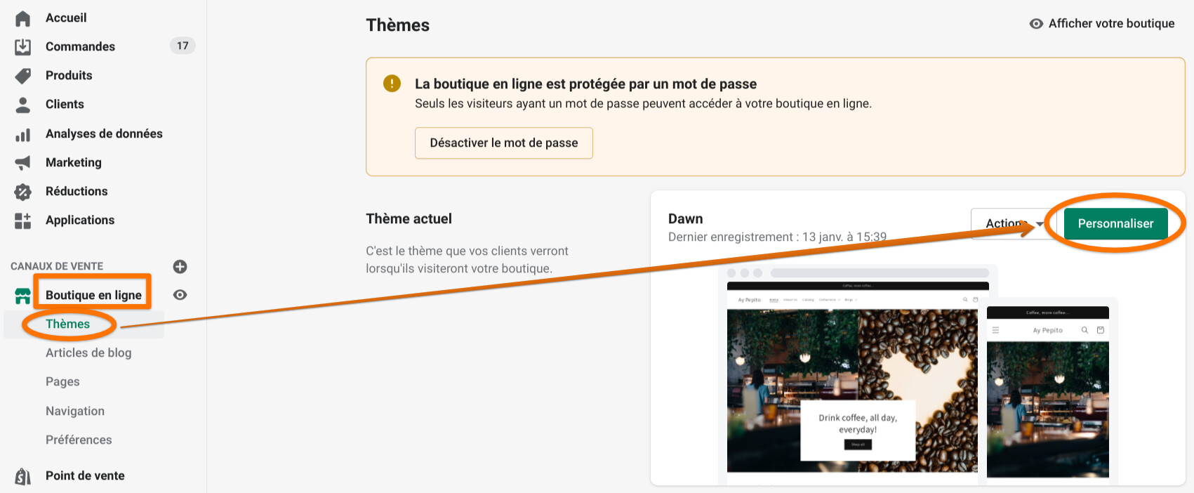Essayez sur l’application mobile Shopify afin d’exclure tout problème lié à l’interface web de Shopify ;