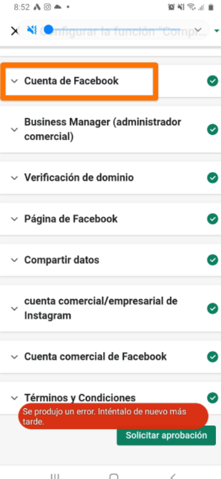 Entiendo que tienes tu cuenta de Facebook configurada, pero al intentar solicitar aprobación para tu cuenta de Instagram, el sistema te da el error que dice ‘Se produjo un error, inténtelo de nuevo mas tarde’ ¿verdad?