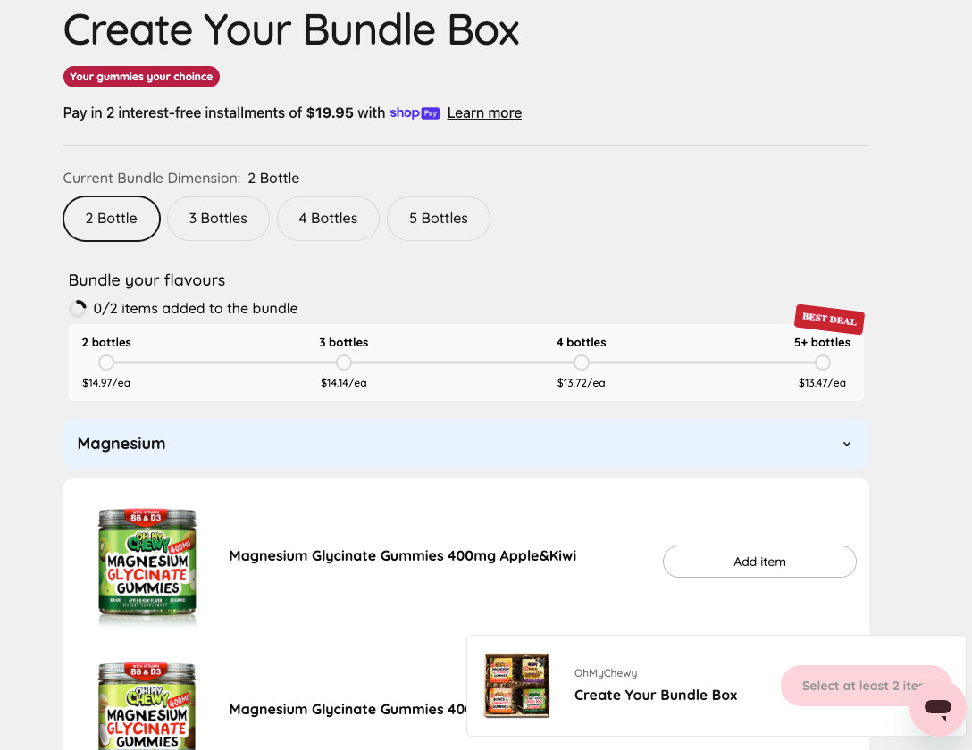 Mix-and-Match Bundles: Allow customers to build their own bundles from a selection of products, like custom boxes or variety packs. Use apps like BiDeal Bundle Volume Discounts to enable easy selection and price updates.