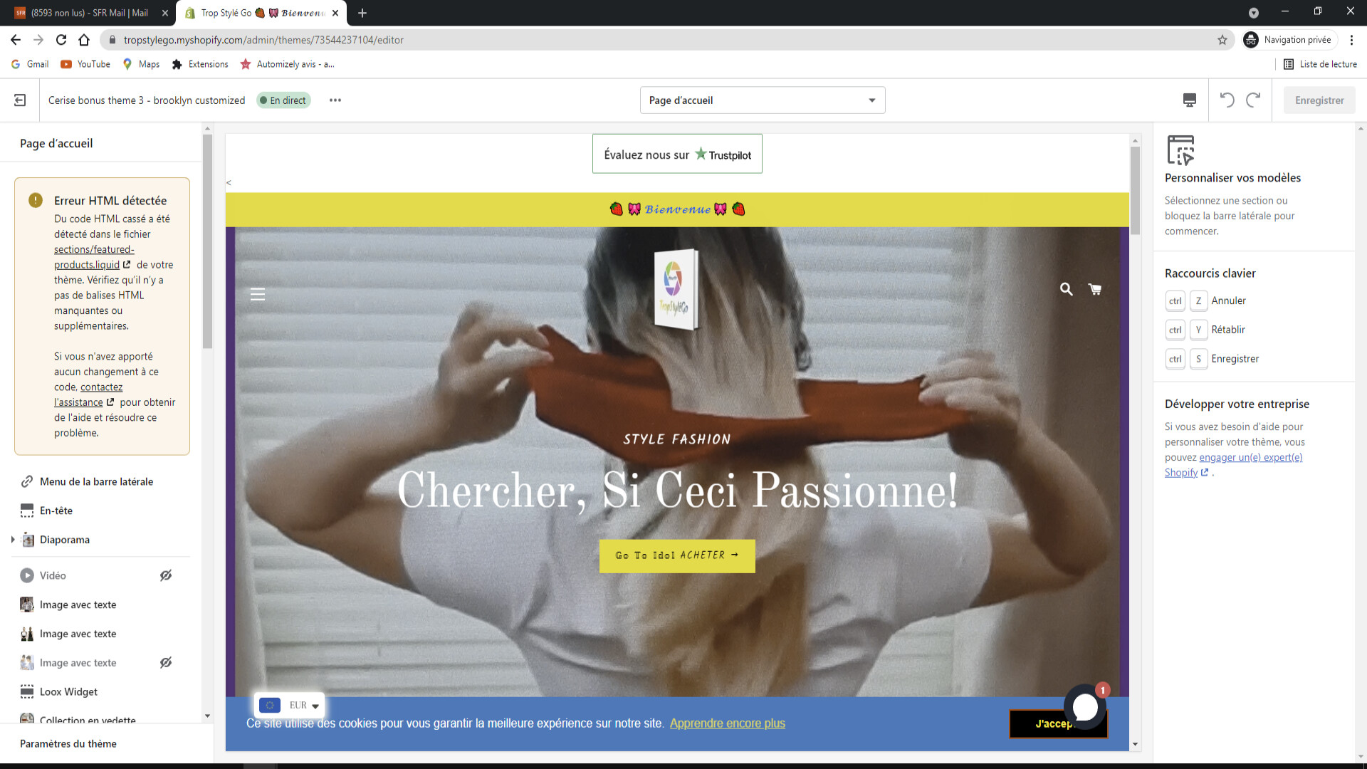 Il a une erreur Html dans la partie SECTION en cliquant sur personnaliser thème ( voir à la gauche d’image ). Merci m’informer comment il faut le corriger?