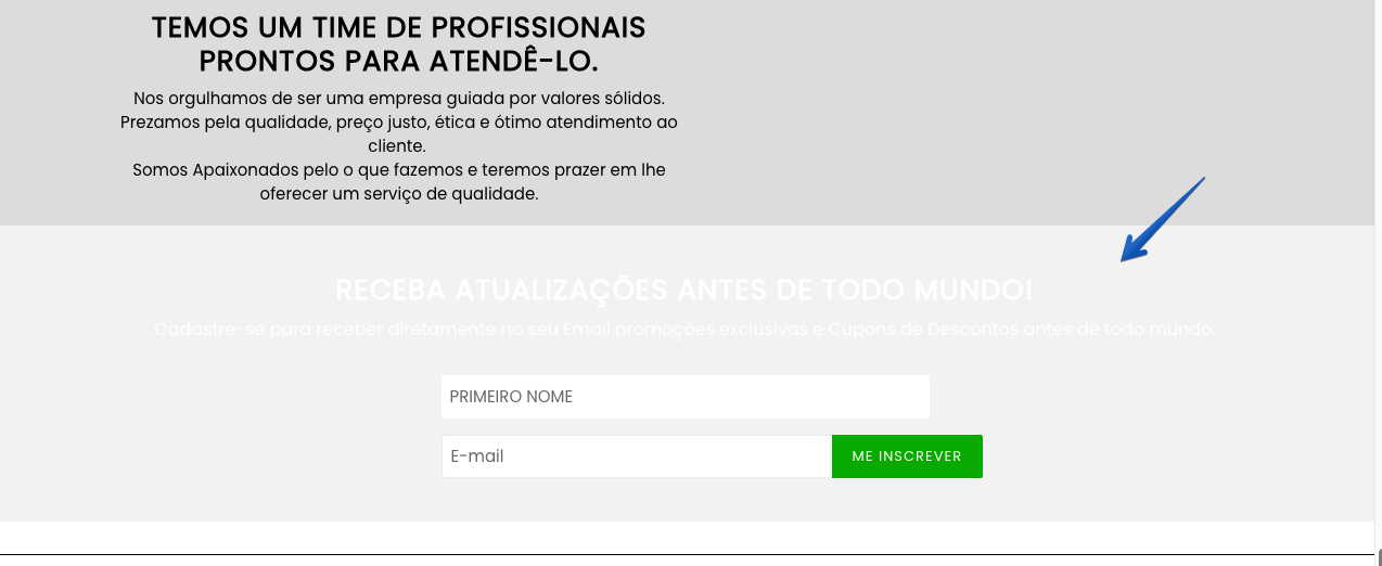 Recomendo conferir a cor da seção de inscrição e ajustar a cor do fundo para um tom mais escuro ou alterar a cor do texto. Assim, os clientes não terão dificuldade em visualizar as informações. Como pode ver na imagem abaixo, o texto não está tão visível.