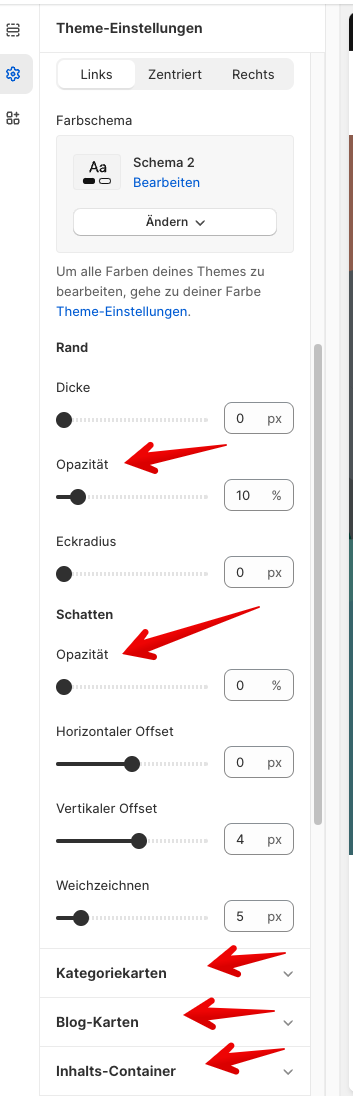 Vieles kannst du aber auch in deinen Theme Einstellungen finden wie unten abgebildet und ggf. liegt es an der Opazität der Container und Karten: