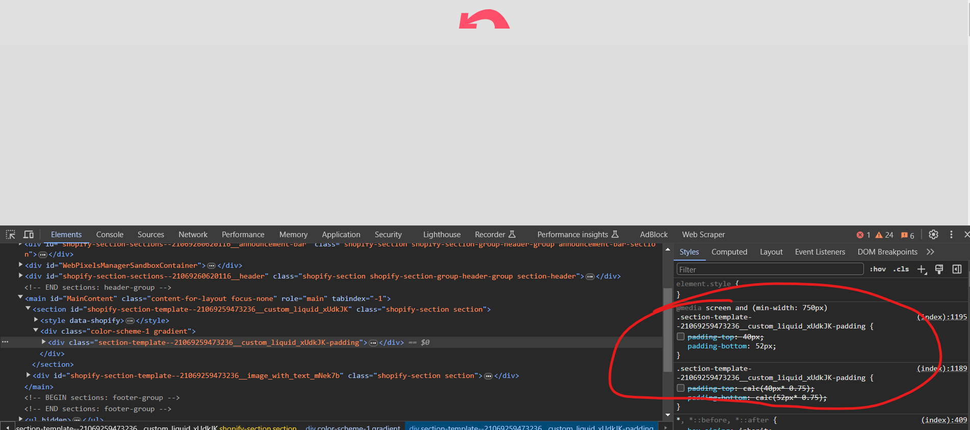 this is the display i get when i reduce the padding to zero for the image with text and custom liquid content block: