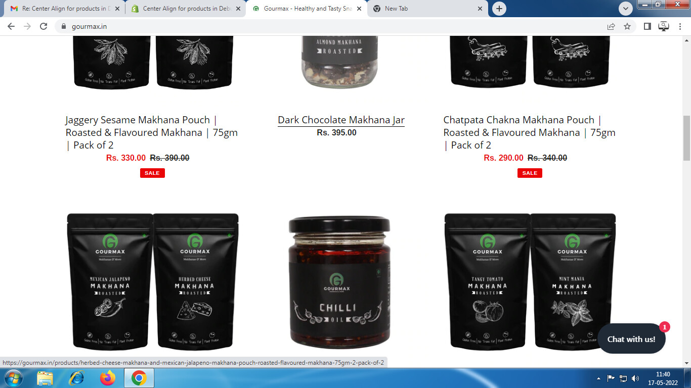 my website is www.gourmax.in I am looking to center align my product & description. Let me know what can be done