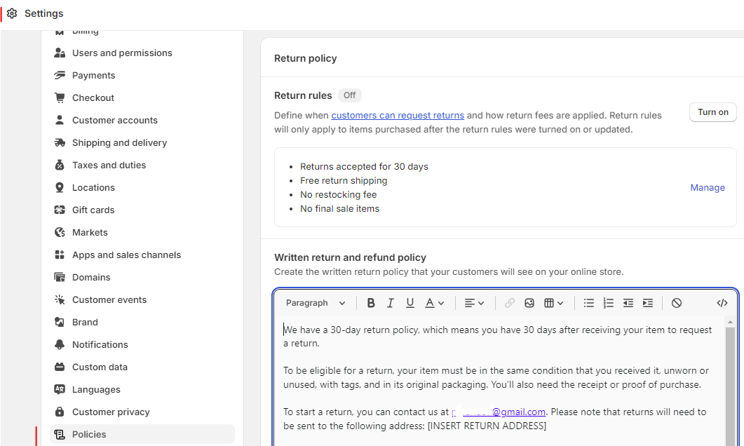 3: Copy text back into shop policy editor