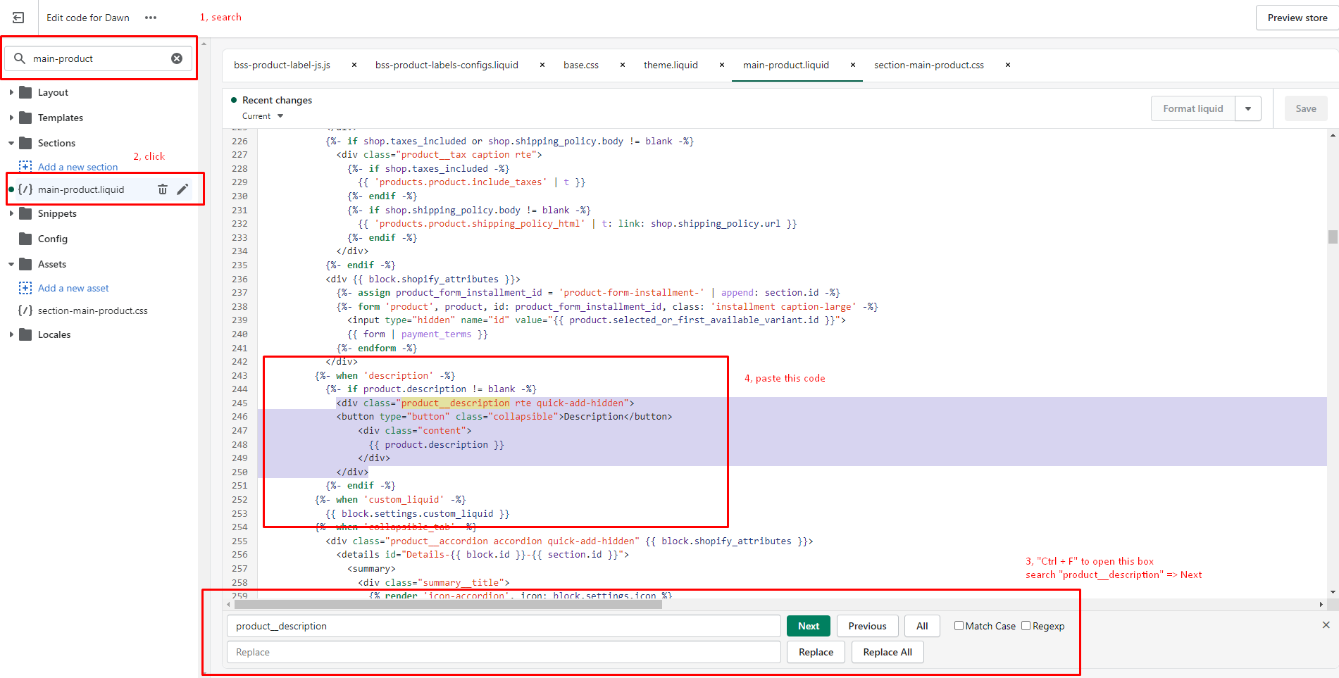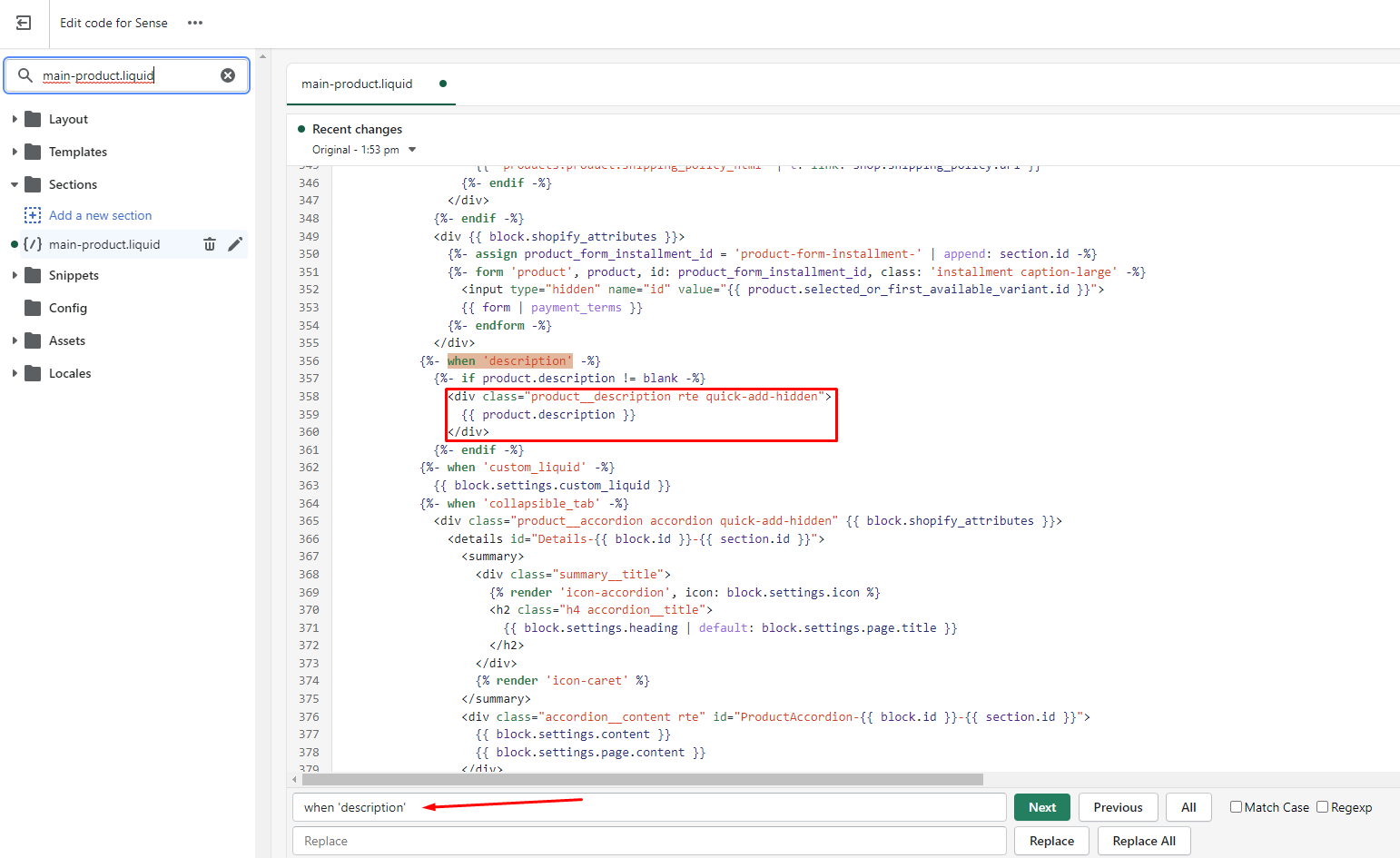 The main-product.liquid file does not contain code: “when ‘description’ -” as described by @GemPages . thank you very much!
