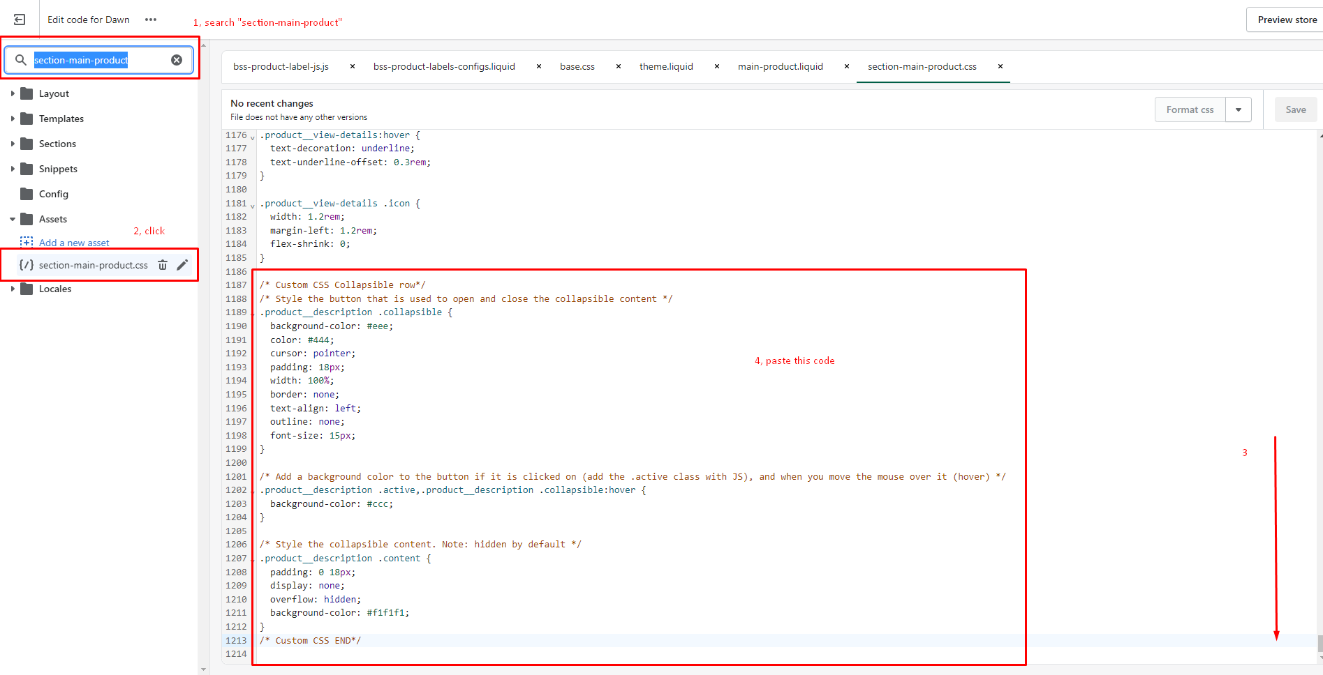 I want my product description on each of my product pages appear into a collapsible row. For each description, make it collapsable or accordion.