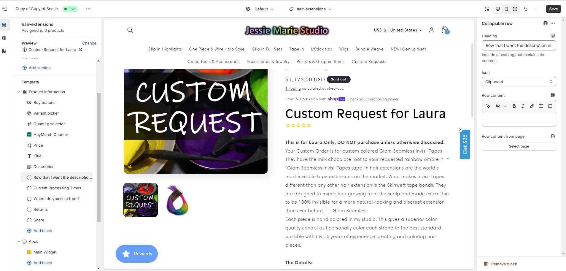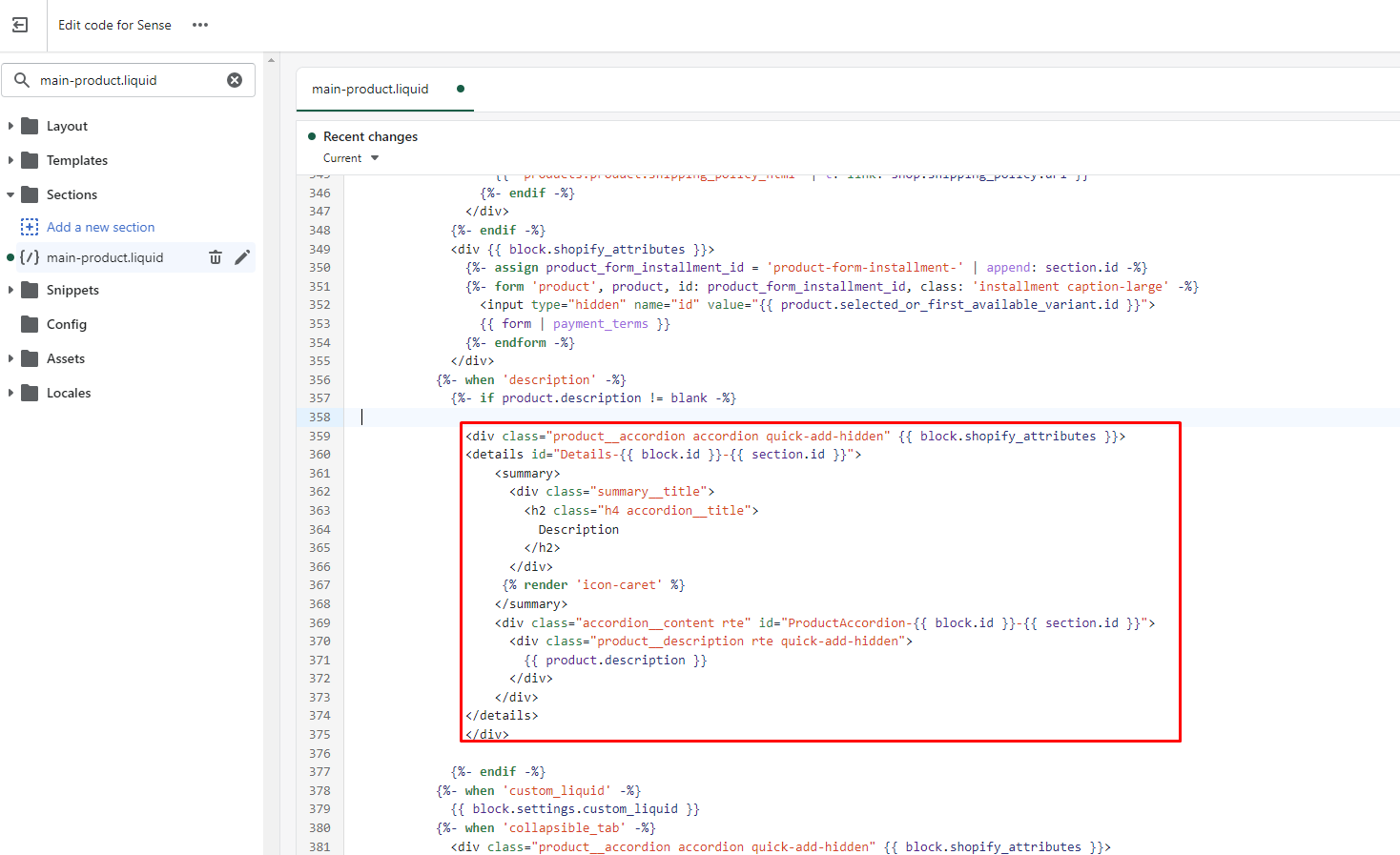 But on the SENSE Template, there are no customizable settings to do that. I can add separate collapsible rows but not for each product description, and I don’t want to use meta fields because it will be the same work, in 400 times. And I don’t want to create a new template page for every single item in my inventory, more than 400 products…