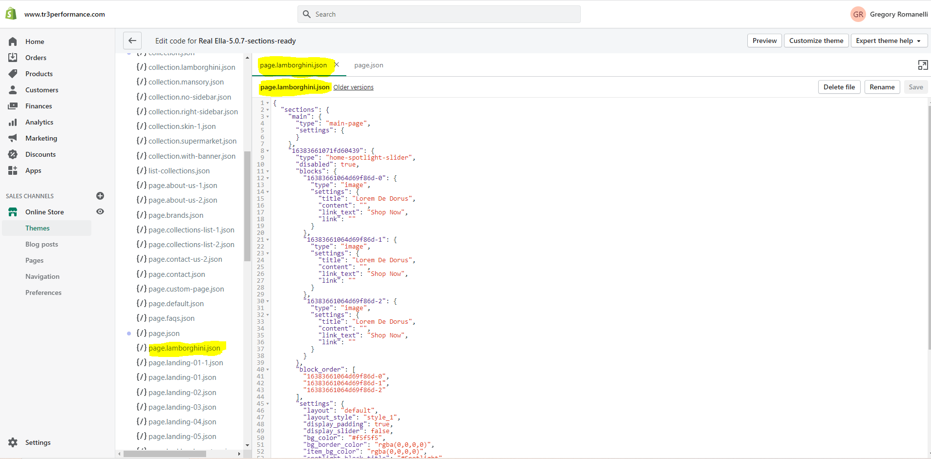 I am currently using the Ella Theme which is Shopify 2.0 compatible. So I would have to create a New Page Template named Lamborghini and then link that new page that I created in the Theme editor.