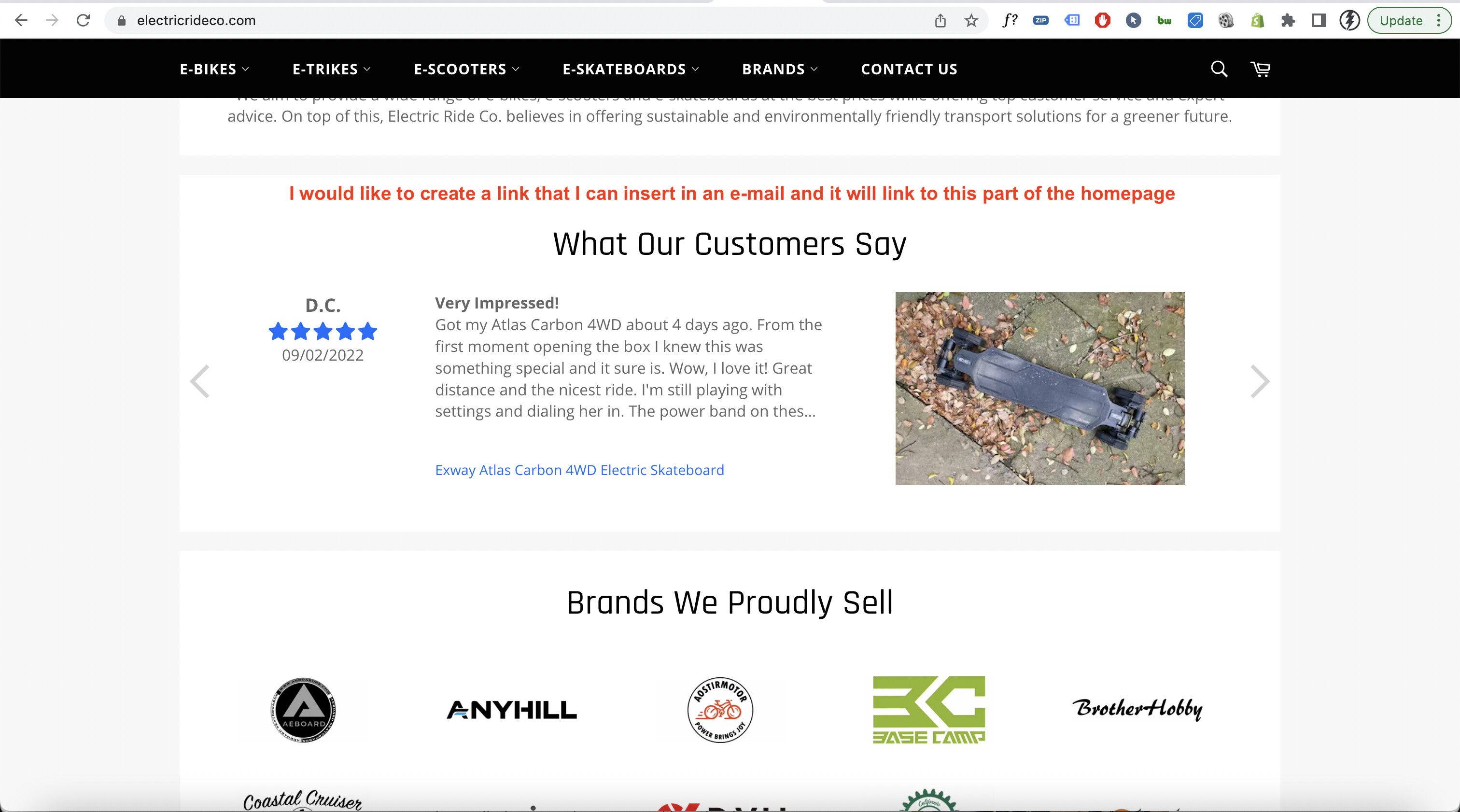 I would like to create a link that goes to a specific section on my homepage - “What our customers say”. Please see screenshot below.
