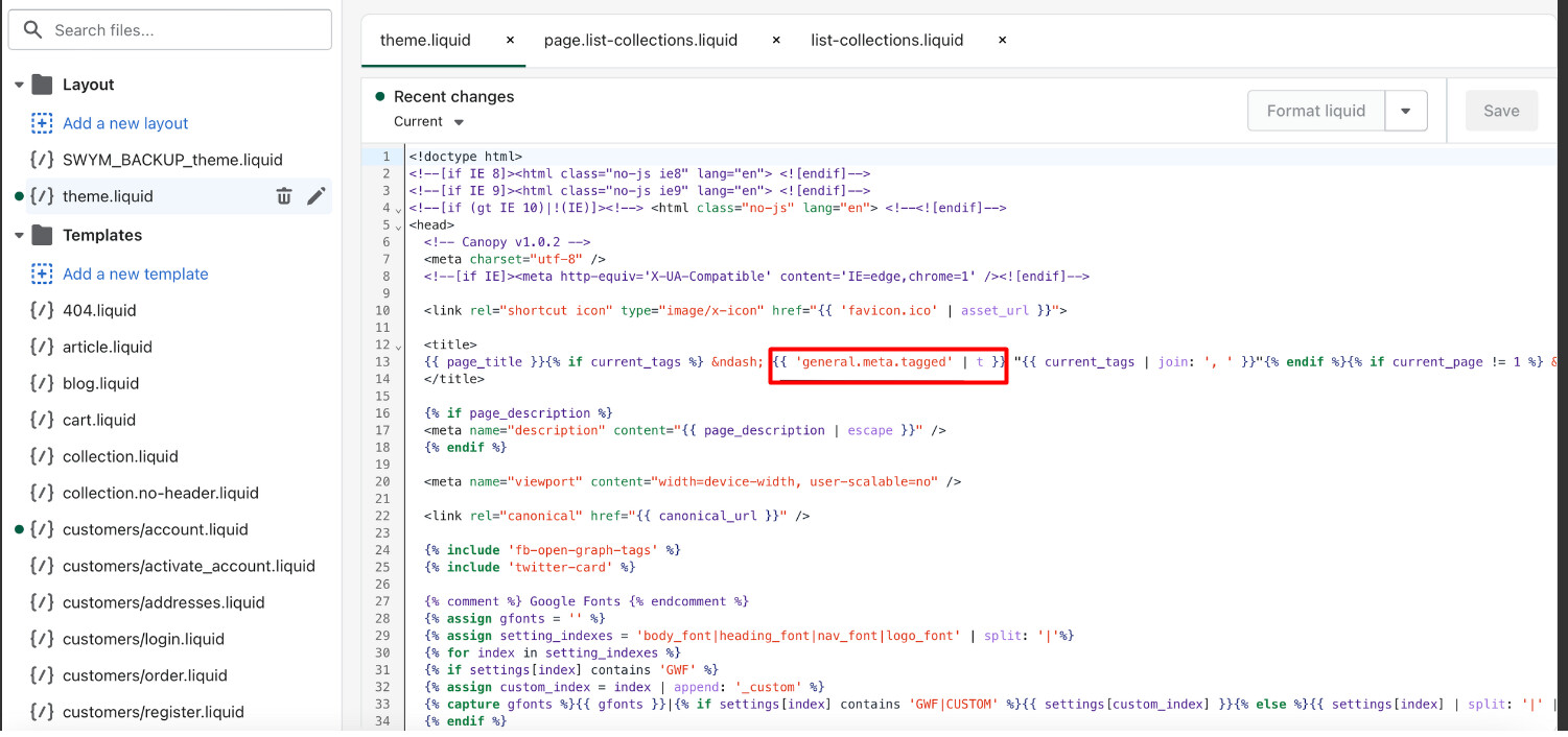 Recently changed the SEO page title for a couple of my shops collections. The first page of my collection turns out fine and has changed to what I set it too. The second page, however, adds an error message after the title “translation missing: en.general.meta.page 2”. Does anyone know how to fix this?