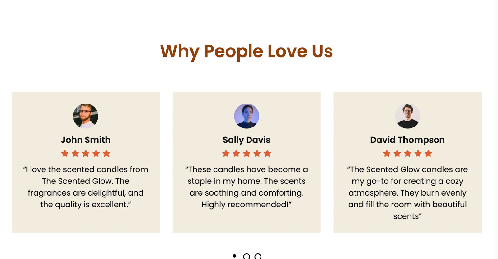 Testimonials. Try to showcase at least 5 testimonials on your site. Whether it’s from friends and family, or your offline store customers. Having some social proof helps boost consumer confidence in your site.
