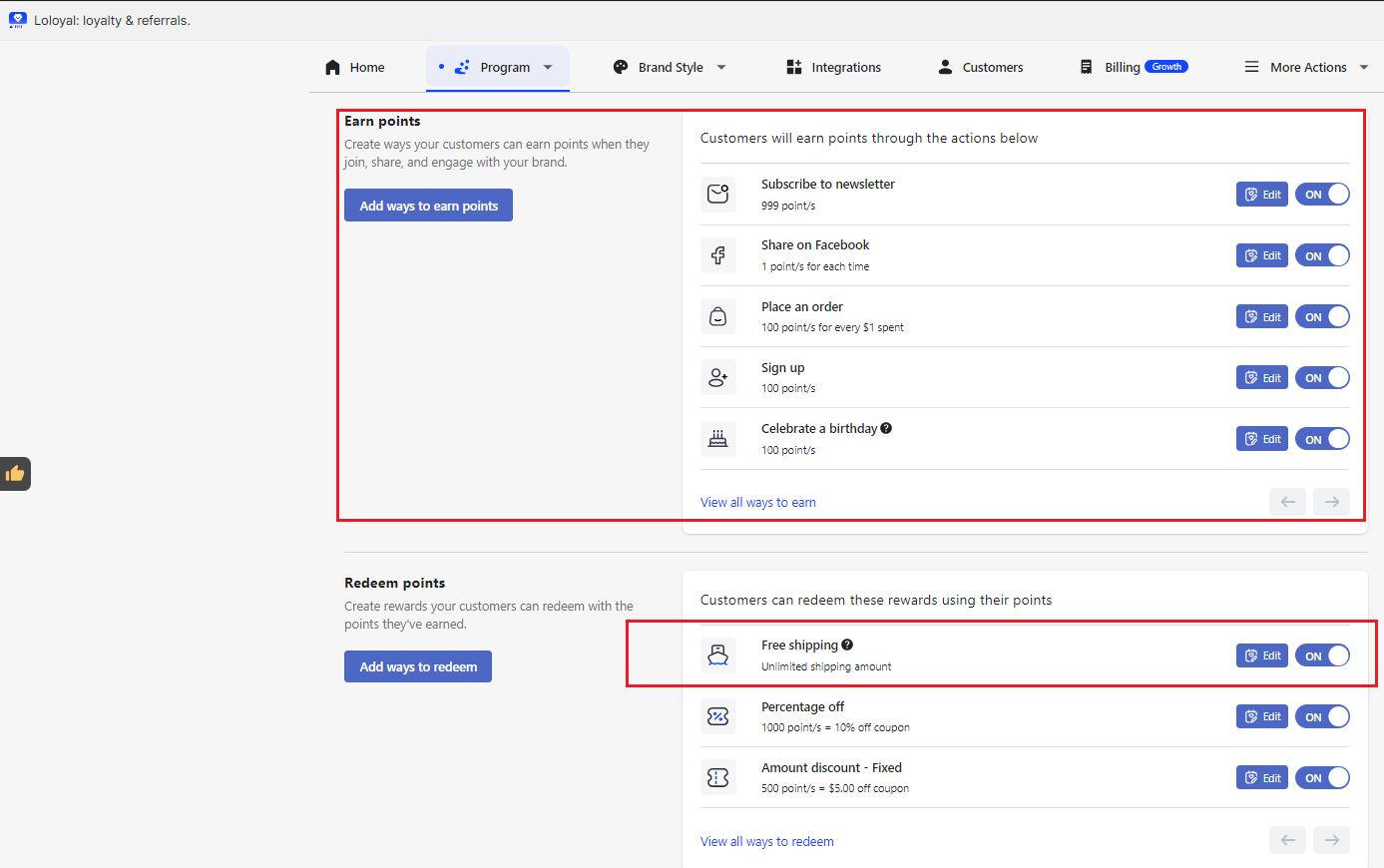 As what you expect, you could set up more points for sign-up and fewer points redeemed for free-shipping rewards. For example, customers can get 100 points for their sign-up and need to redeem 10 points for free shipping rewards. After that, your customer can use the free shipping reward in their orders.