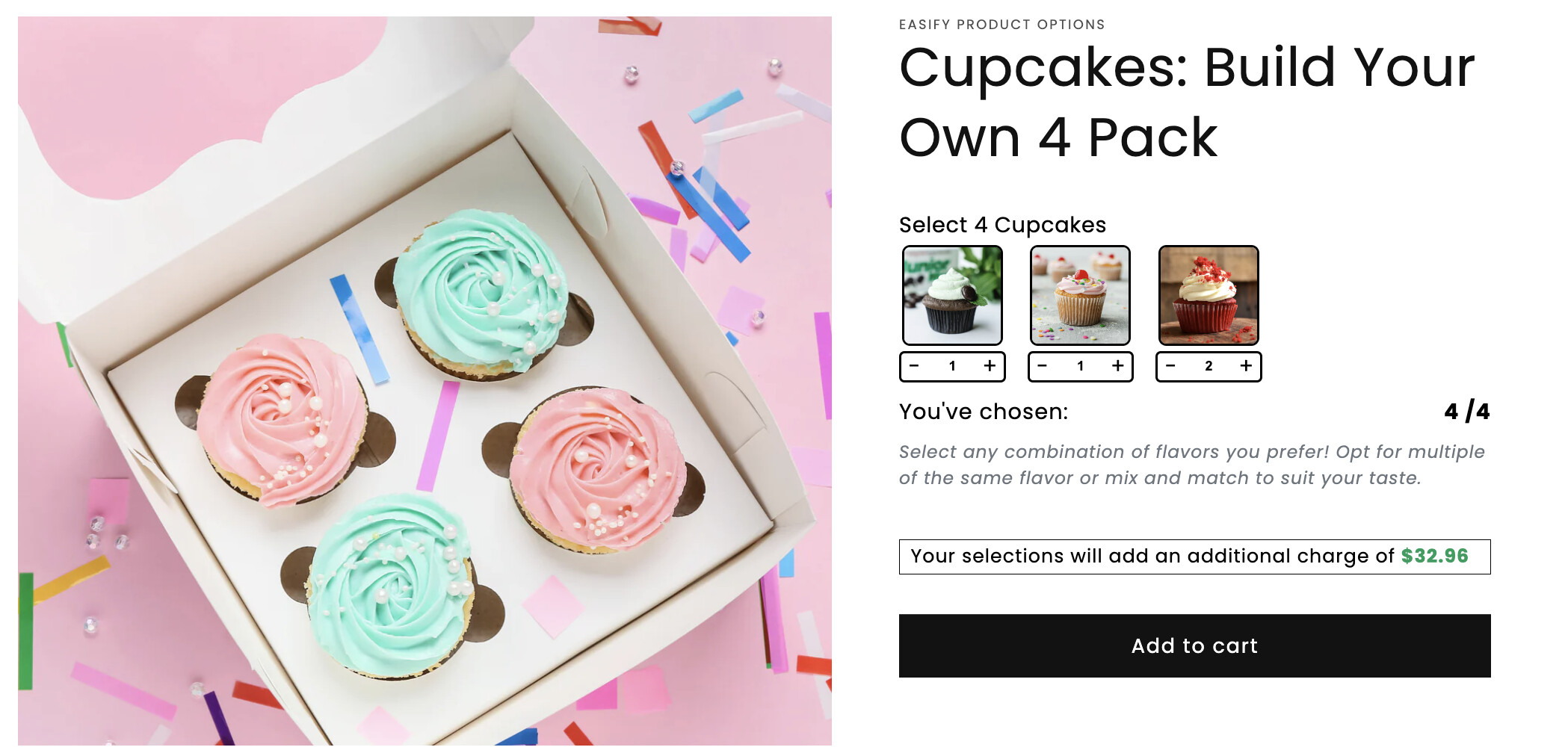 You can consider utilizing the Easify Product Options app, specifically by implementing the Image Swatches option type and activating the Quantity Selector feature. This feature enables customers to choose one or multiple quantities per product. Additionally, you can set the total quantity of selected items to 4, even if you only offer 3 products. See the example below :