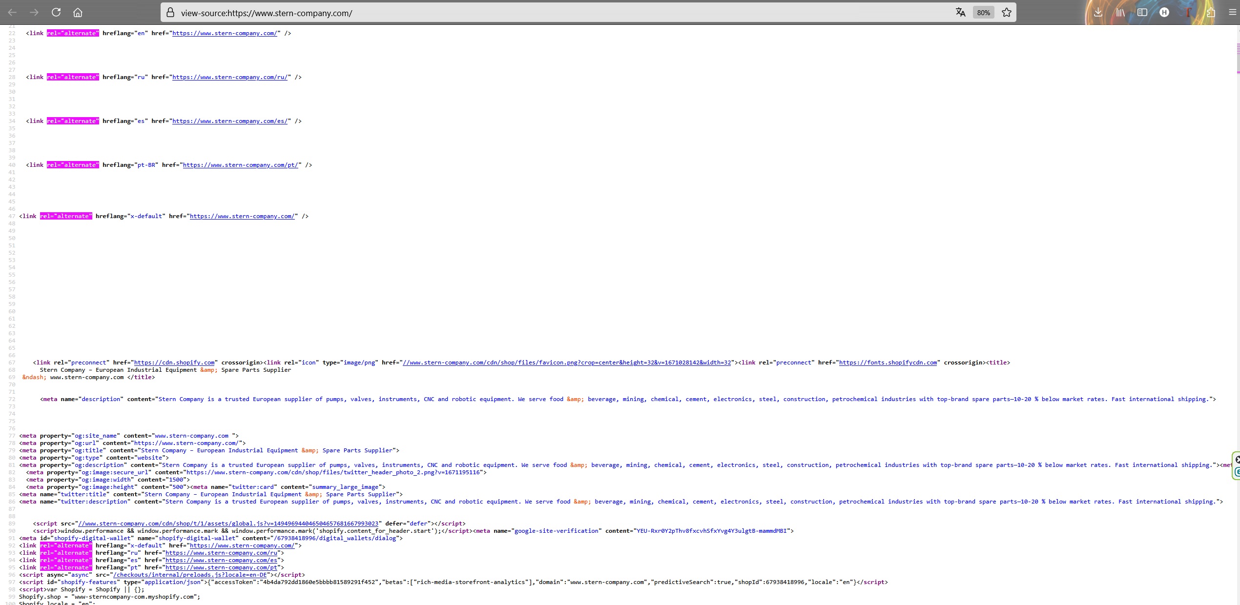 However, the storefront still outputs another additional set of <link rel="alternate"> hreflang tags in the HTML <head>, resulting in duplicates.