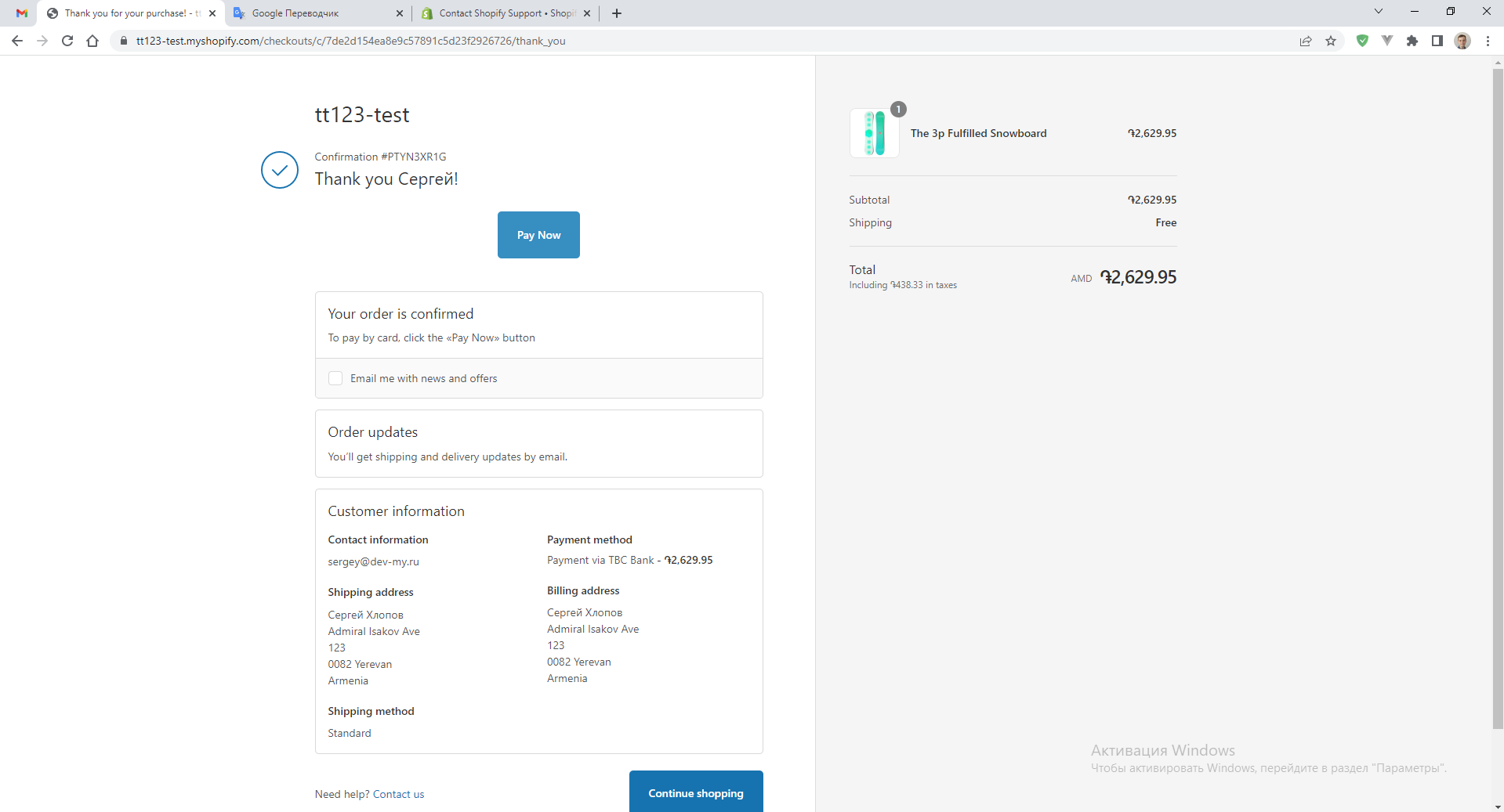 I want to add a «Pay Now» button on the «order status page». I will make the button through the «additional scripts» field (Settings → Checkout → Order status page). The «Pay Now» button appears when you select a manual payment method «Payment via TBC Bank». By clicking on the button, the user will be redirected to the payment page «TBC Bank». After a successful payment, I want to use the «Shopify API» so that the order goes into the paid status.