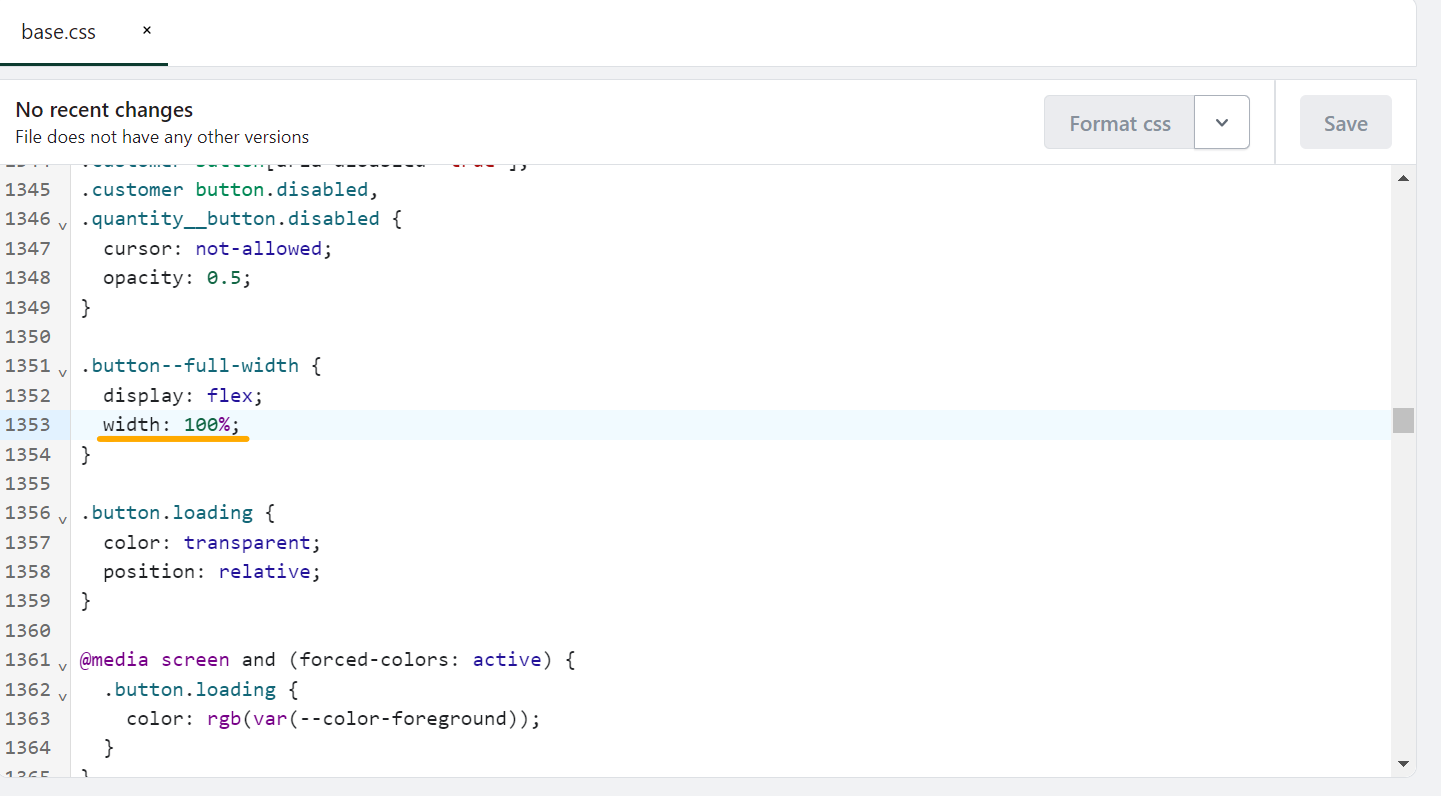 In the code editor, find the CSS file that controls the styling of the “Add to Cart” button. The file is usually named “theme.css.liquid” or “base.css” and is located under the Assets folder.