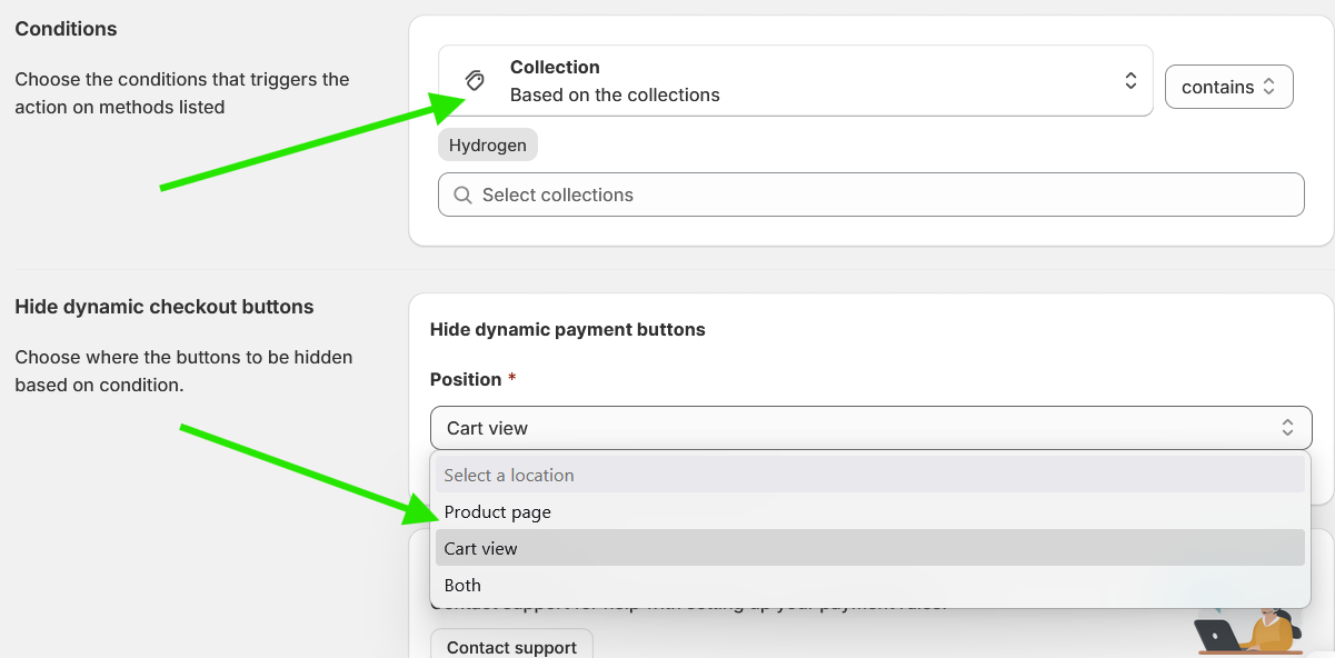 I only want to keep the Add to cart button, the rest makes no sense whatsoever. Especially when the More payment options link goes to Checkout. I’d love for Shopify to explain in what way this setup helps any customers? It seems everyone has been frustrated and annoyed with these Express buttons for long years and yet, nothing has changed? I’m starting to regret changing platforms at this point