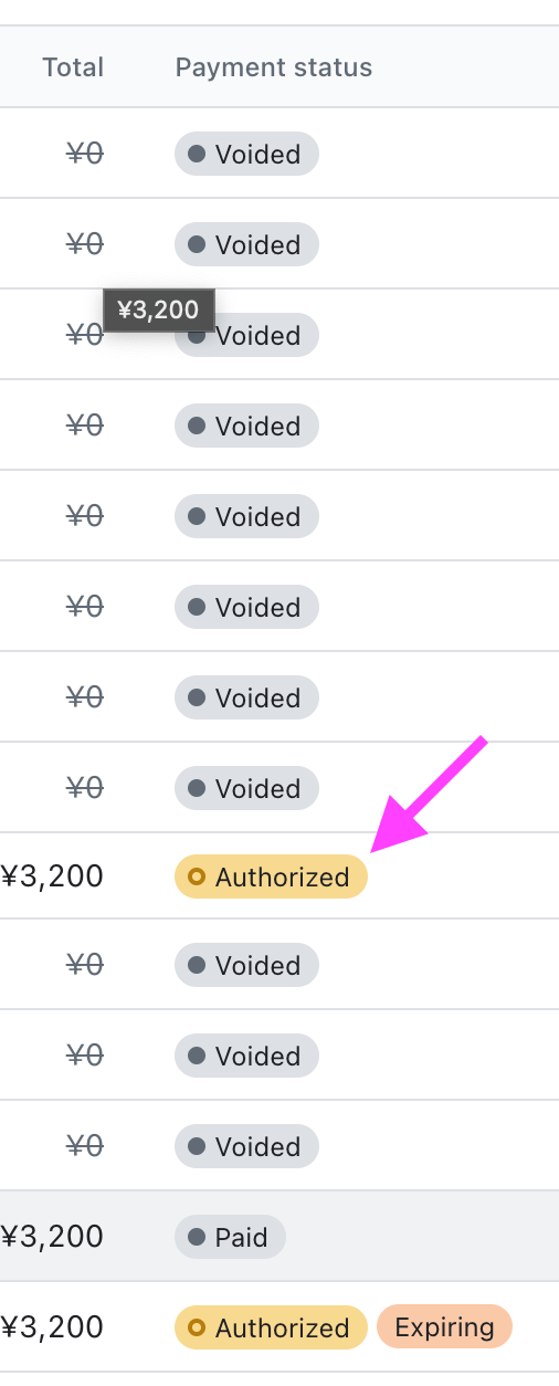 Any orders that have not been captured will show the “Authorized” status. While orders that are cancelled without having it’s payment captured will show “Voided” status. As you can see below.