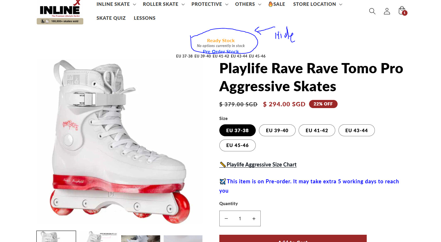 make a heading to show variants with 1 or more in stock., connect dynamic product, show options that have 1 or more in stock, show option values that have 1 or more stock in inventory, make in to a heading and non clickable. Remove the option name., remove all containers. keep only text, add heading to this block, add a spacing between every value