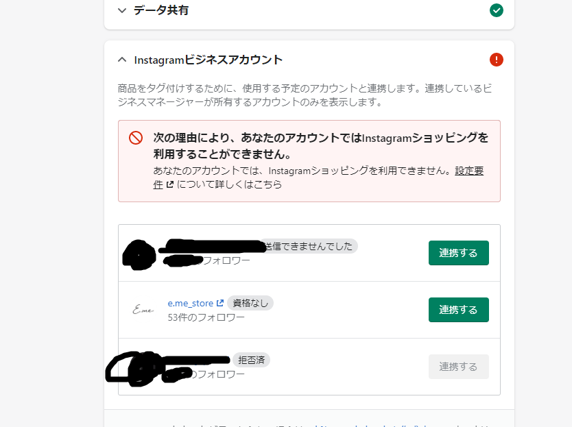 facebookアプリ>instagramショッピングを設定するにて、 instagramビジネスアカウントを連携できず、画像のところから進みません。