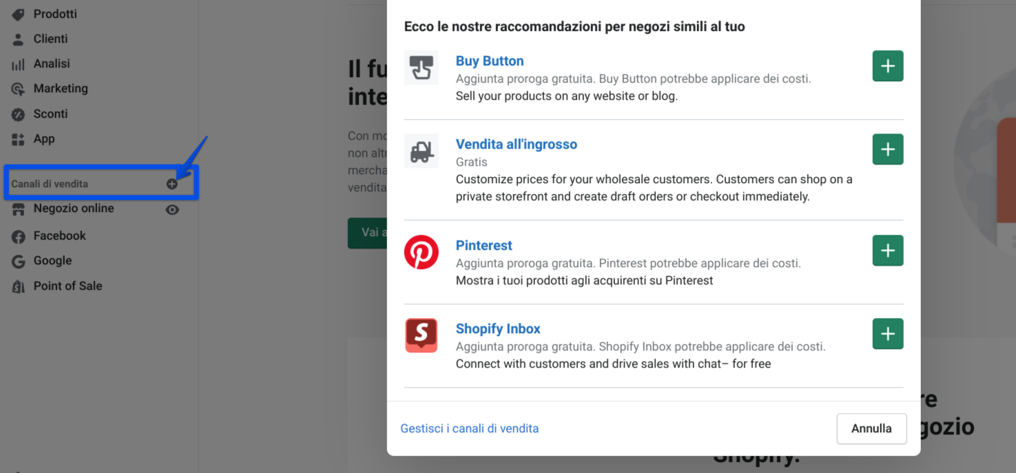 Ad esempio, ti consiglio di considerare i Canali Di Vendita per rendere i tuoi prodotti acquistabili sulle piattaforme social più usate: