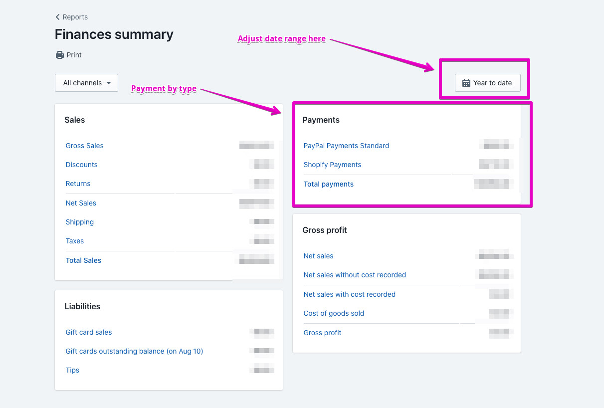There’s not a direct report that shows the Payment Type by Customer. But there is a report that shows Payment by Type. To view this report please go to ‘Analytics > Reports’ from your Shopify admin, and scroll down to the Finances section.