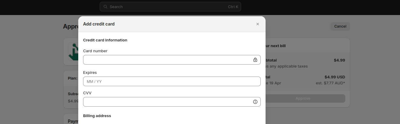 I’ve created a Shopify App using the “App Subscriptions” model. Based on the “Testing your app’s billing system” documentation I found, you can send a “test”: true property into the charge request to have it treat the request as a test. I am able to use the API to create a recurring application charge. When I navigate to the confirmation URL, I want to be able to test payment. I thought I could do so if test mode on Shopify payments is on and I use the card numbers from here but the card numbers keep getting declined.