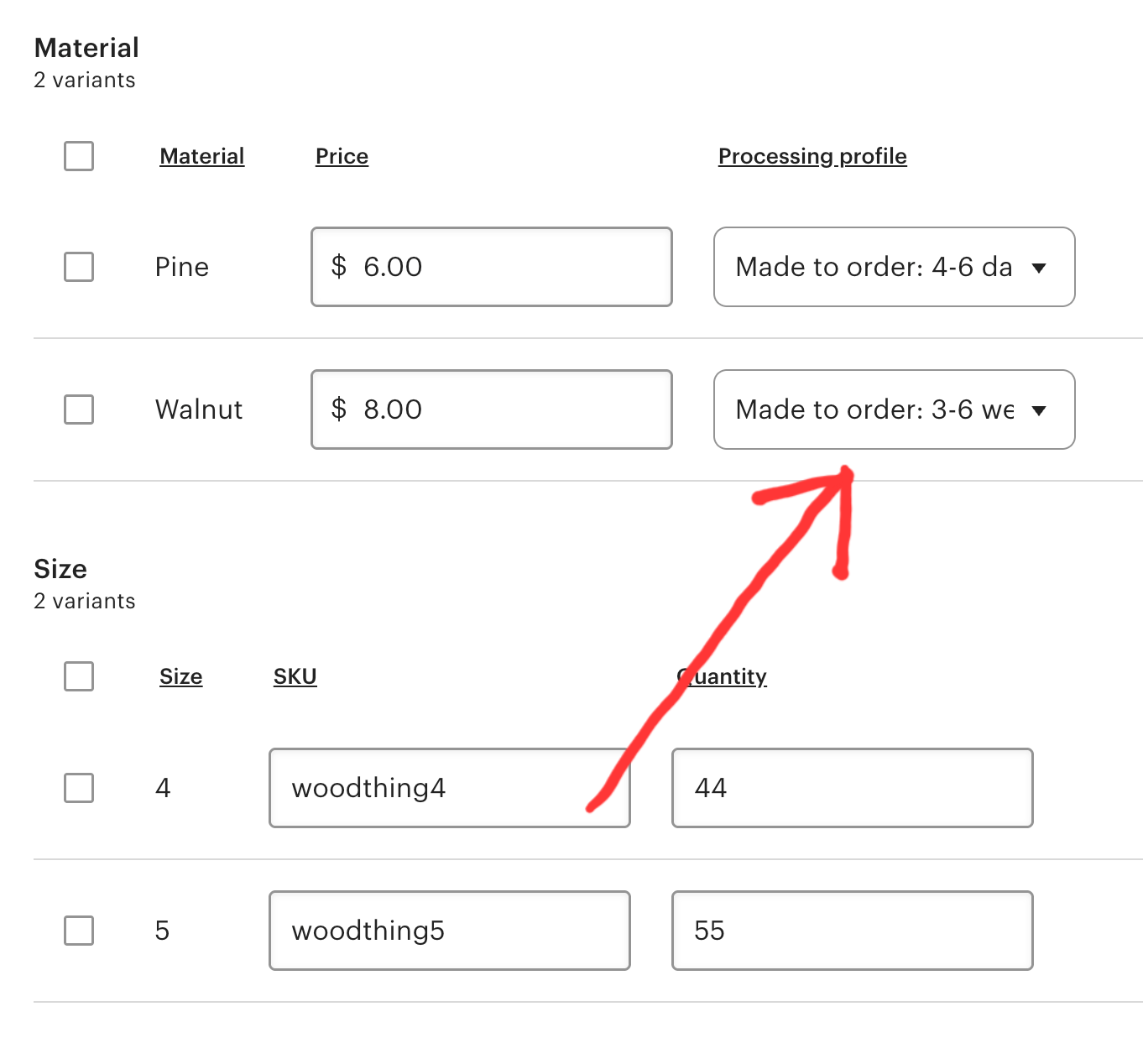 This does not solve the problem - I would have to be able to pass the listing to Etsy first and then add the processing option after, however new listings fail to transfer to Etsy due to not passing this value.