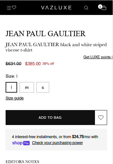 now I need to move my size guide etc up. My site is : https://vazluxe.com/products/jean-paul-gaultier-black-and-white-striped-viscose-t-shirt-251a54dts000001-0100