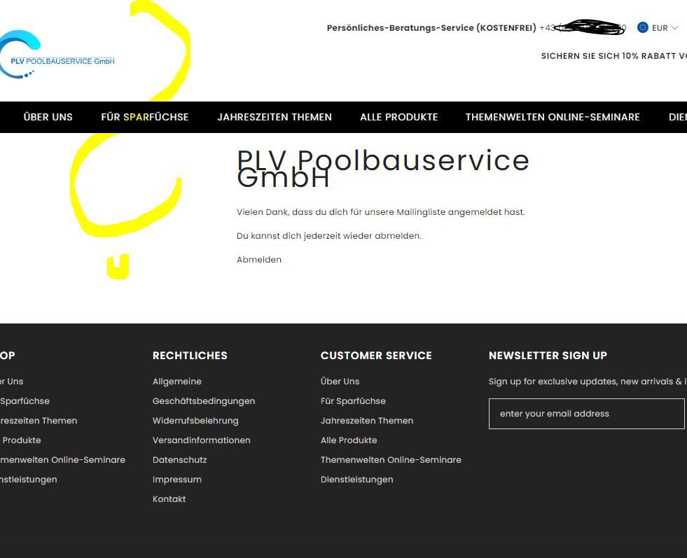 Drückt der Kunde nun auf den CTA Button “Bestätigen” wird er zurückgeleitet auf folgende Seite…