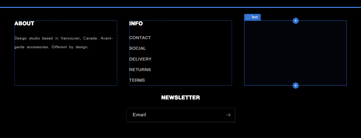 No problem! Here you go: for the theme in drafts titled “Updated copy of New Theme 2024 - STUDIO” I want the newsletter sign up to be in the far right column where currently the column “Heading” is, instead of underneath the four columns like it is currently.