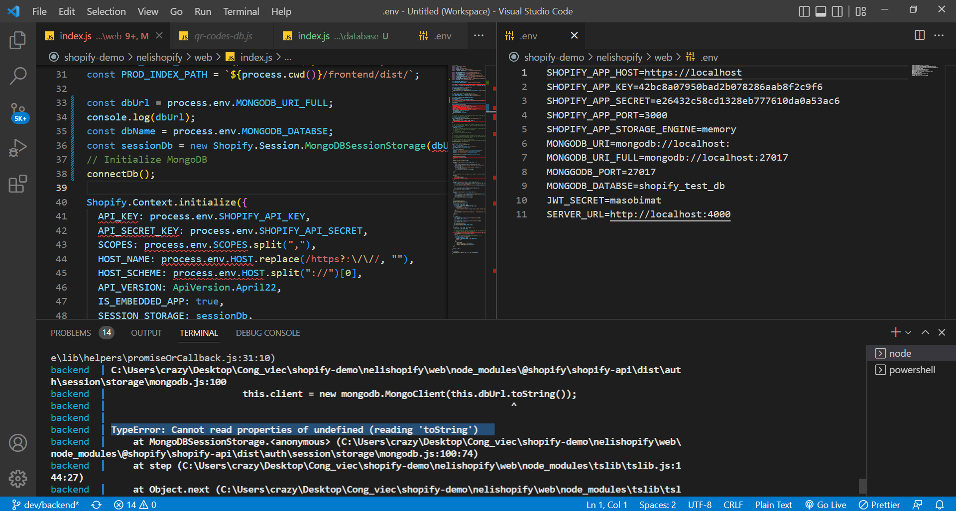 Hi Shopify experts. Can someone please help me. I followed the docs https://shopify.dev/apps/getting-started/create and created a node app template. I ran npm run dev and the app works fine on Shopify admin website, but not localhost. Also, i can’t seem to find the .env file in the project no matter how many times i try to recreate the project. When i create a new .env file, i can’t console log any variables from that file.