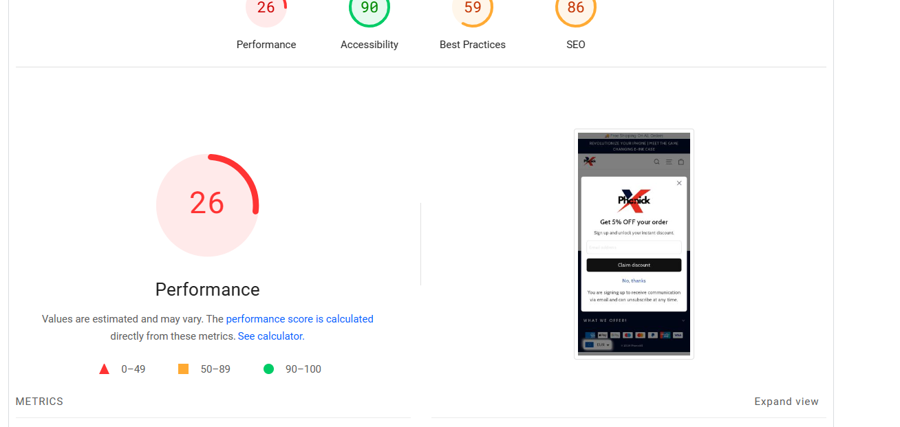Your site might be in need of Optimization too. As per Google Insights, your site score is 26 which means that attention is required here. A well-optimized site rates 60+ for mobile version, this affects your SEO ranking and decides how many customers/visitors view or find your website as 80% visitors use mobile to place the order. This is especially important if you don’t want to invest in advertisements.