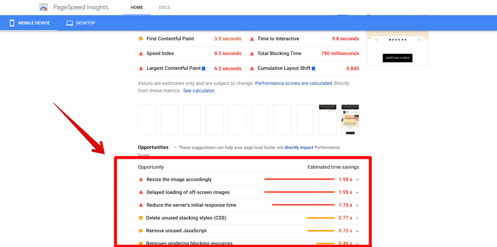 Besides, you should check both Mobile and Desktop devices in the report. On the desktop, we can see the problem still come from your resizing images and unused code.