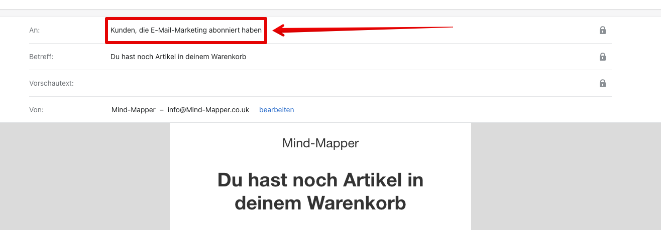 Du hast natürlich recht - die Recovery E-Mails sollen nur an die Kunden gehen wenn diese zugestimmt haben. Die E-Mail Einstellungen für abgebrochene Checkouts werden jetzt auch nicht mehr wie vorher verwaltet sondern durch die Marketing-Automatisierungen, (wie ich oben bereits gezeigt habe) so dass man mehr Kontrolle über alle E-Mails hat die an die verschiedene Kundensegmente gesendet werden können, die du als Ladenbesitzer erstellt hast: