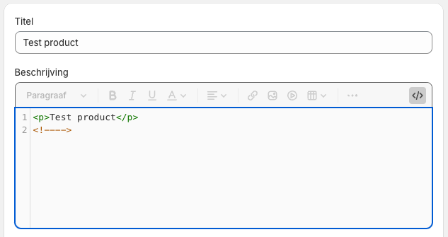 Zou je eens in je backend naar een product willen gaan en bij de beschrijving op de volgende knop willen klikken: