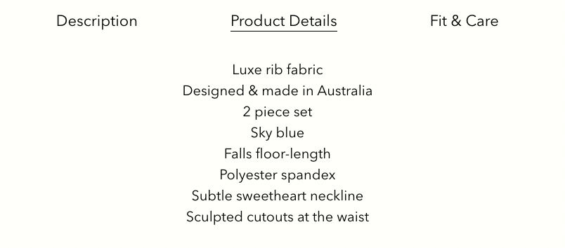 However, I have noticed with tabs sections that all tabs point to the same generic pages (e.g. shipping page or size guide page, etc). However I want my tabs to correlate directly with the product information like the example below, so it shows the product description, product details and fit & care information. All this information is going to be unique based on the product. This website has managed to do it to their store so it must be possible but I don’t know how. Any help or advice would be greatly appreciated! Desperate to have this feature on my store so I’m thinking about hiring a Shopify expert to help?