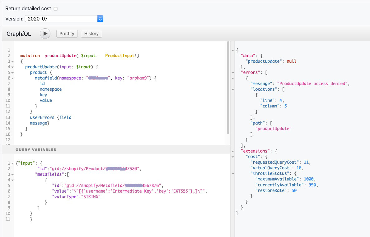 Permission errors: Resolved by reinstalling the Shopify GraphiQL App or verifying user account permissions