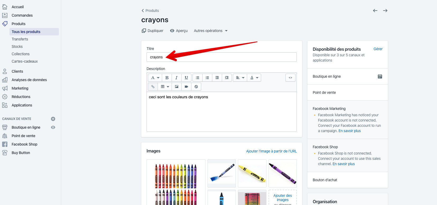 Vous changez le nom du produit (example-product) par le nom d’un de vos produits, en copiant-collant exactement comment le produit est écrit dans la fiche du produit, dans le champ du titre ? Comme par example ici :